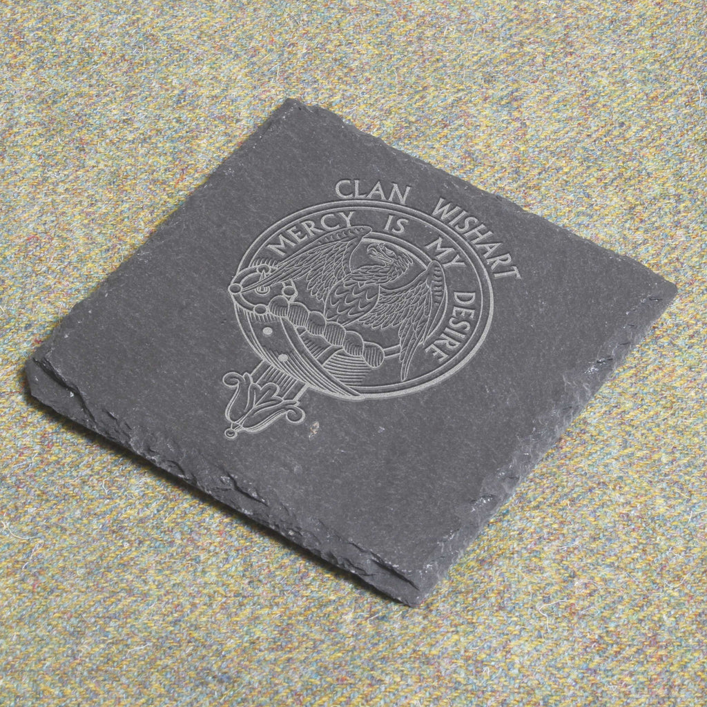 Elevate your home decor and proudly display your clan crest with our Wishart Clan Crest Slate Coaster. Order today and make a statement with every sip!
