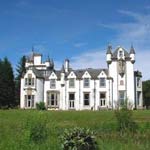 Taymouth is a lavish 19th century Neo Gothic mansion near Kenmore. The castle sits on the site of the earlier Balloch Castle built around 1550 for Sir Colin Campbell of Glenorchy. Balloch was remodelled in 1720 by William Adam undergoing several further changes throughout the century. In 1799 the main block of the house was demolished and from 1806 the ornate gothic building was commenced with the work finishing around 1842. Queen Victoria and Price Albert stayed here on their first visit to Scotland in the same year. The Campbells sold the castle in 1922 and it had various uses as a hotel, hospital and boarding school. Plans are now underway to convert the building onto a luxury hotel.