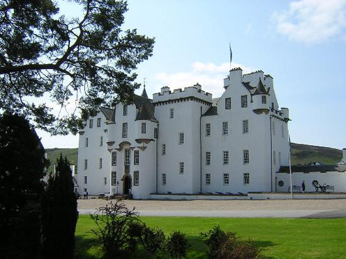 Blair Castle stands in its grounds near the village of Blair Atholl. It is the ancestral home of the Clan Murray, and was historically the seat of their chief, the Duke of Atholl, though the current (12th) Duke, Bruce Murray, lives in South Africa. The castle commands a strategic position on the main route through the central Scottish Highlands. Blair Castle is said to have been started in 1269 by John I Comyn, Lord of Badenoch (died c. 1275), a northern neighbour of David I Strathbogie, Earl of Atholl (died 1270). During the Wars of the Three Kingdoms of the 17th century, the Murrays supported the Royalist cause, which led to Blair Castle being taken by Oliver Cromwell’s army following his invasion of 1650. The restored Charles II created the title Marquess of Atholl for John Murray, 2nd Earl of Atholl (1631–1703). The title Duke of Atholl was granted to the 2nd Marquess in 1703. The castle also provides the garrison for the Atholl Highlanders, the private army of the Duke of Atholl, noted as the only legal private army in Europe.