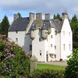 Newton Castle is a 17th century ‘Z plan’ house on the outskirts of Blairgowrie. A castellated manor house stood on the site from the mid 1500s but burned down in the 17th century. The castle was later rebuilt in the former style. Large irregular stones at the base of the building may be part of the original structure. The castle is said to be haunted by the ghost of Lady Jean Drummond who died after making a pact with a local witch and becoming enchanted. The castle is home to Sir William Allan MacPherson of Cluny and Blairgowrie, chief of Clan MacPherson