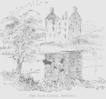Renfrew Castle was a castle situated near junction of the River Clyde and White Cart upon the former river islet, known as the King’s Inch, at Renfrew, Renfrewshire, Scotland. Once considered a royal castle nothing remains of the castle above ground. A castle was built in the 12th century by Walter fitz Alan, High Steward of Scotland out of wood with stone foundations after being granted lands by King David I of Scotland. The strategic location of this castle was to prevent the eastern expanison of Somerled’s lordship and from Norse invaders. Rebuilt and extended in the 13th century by James Stewart, High Steward of Scotland, it was the chief residence of Clan Stewart. It was captured by the English during the Wars of Scottish Independence and King Edward I of England gave a charter to Renfrew to Henry de Lacy, Earl of Lincoln in 1301. After the death of Edward I, and sometime after the succession of King Edward II of England, the castle and burgh was sacked after he spent one night at the castle in 1310. Renfrew was then given in a charter by King Edward Balliol of Scotland to David de Strathbogie, Earl of Atholl in 1332. The Stewarts with the help of Sir Colin Campbell of Lochow later recaptured Renfrew Castle. King Robert III of Scotland through to King James III of Scotland resided at the castle for a period of time. The castle seems to have fallen into decay and was converted into a soap works before being demolished in the 19th century.